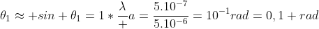 501 nm>500nm, donc l'angle de diffraction correspondant à la longueur d'onde 501 nm est supérieur à celui correspondant à la longueur d'onde 500 nm, donc SUPERIEUR à 0,1 rad