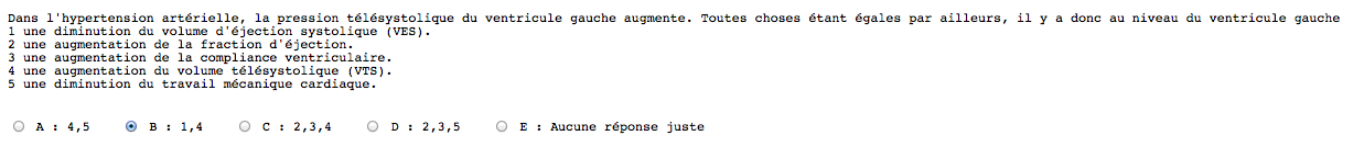 ITEM B FAUX La compliance est liée a VTD (au moment de la relaxation du ventricule), donc aucun rapport avec VTS