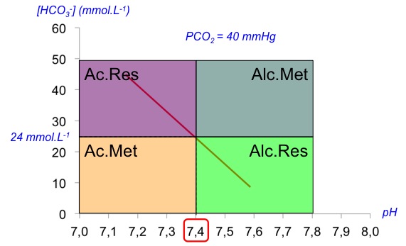 En fait ce qui me perturbe c'est qu'il me semble qu'avec Crenesse on avait vu que l'acidose respiratoire se trouvait au dessus de 24 mmol de HCO3- mais que l'alcalose respiratoire se trouvait en dessous du seuil. Ce qui faisait une sorte de diagonale comme on le voit içi http://fr.wikipedia.org/wiki/Fichier:Di ... enport.jpg