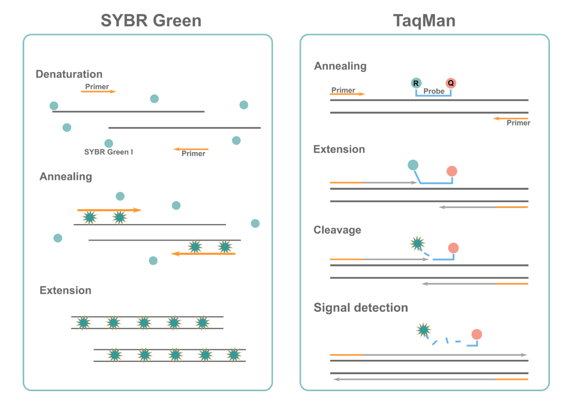 ou la sonde taqman qui ne s'intercale pas entre les brins d'ADN mais s'y