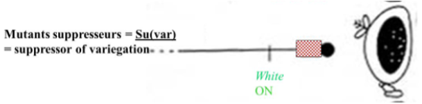 → Gène suppresseur de variégation Su(var) : à l’état sauvage, il code pour une amplification de la variégation / à l’état muté, il code pour sa suppression (comme dit dans son nom)