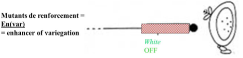 → Gène de renforcement En(var) : à l’état sauvage, il ne renforce pas l’effet de variégation mais à l’état muté, il le renforce