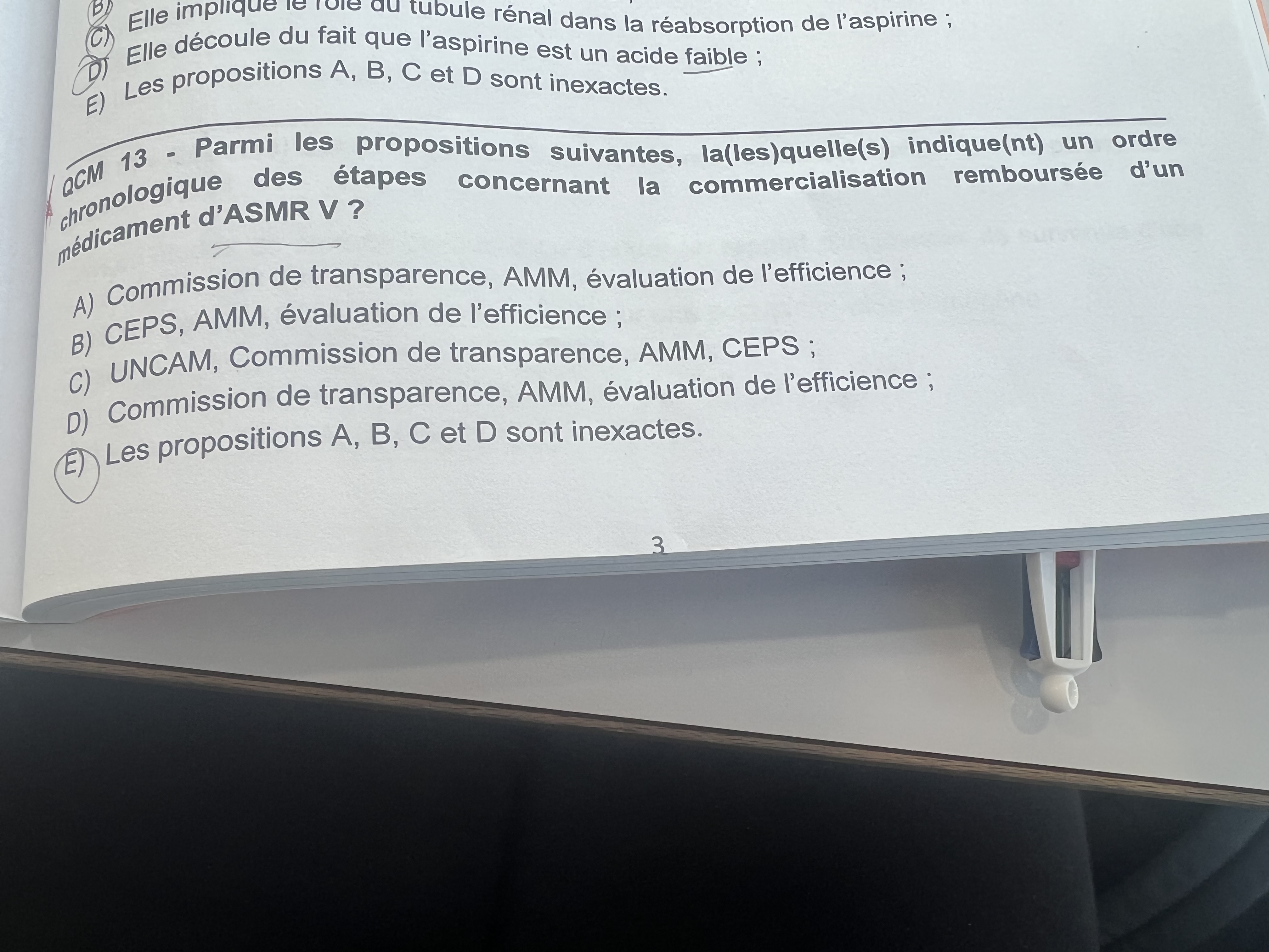 Pour ce qcm, il est compté faux Psq le AMM n’est pas en premier mais pour moi c’est surtout faux Psq ASMR V donc remboursable si et seulement si il apporte une économie dans le coût de traitement