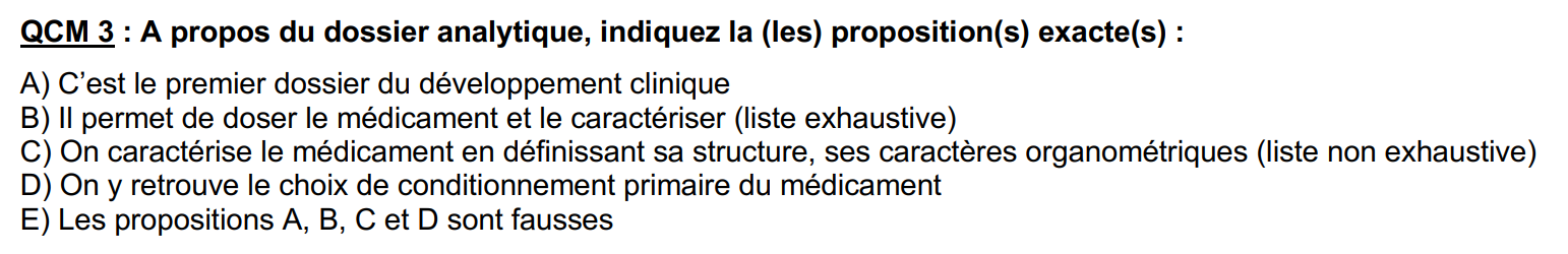Petite interrogation à propos du qcm 3 du dm sur le développement pré clinique et clinique du médicament.