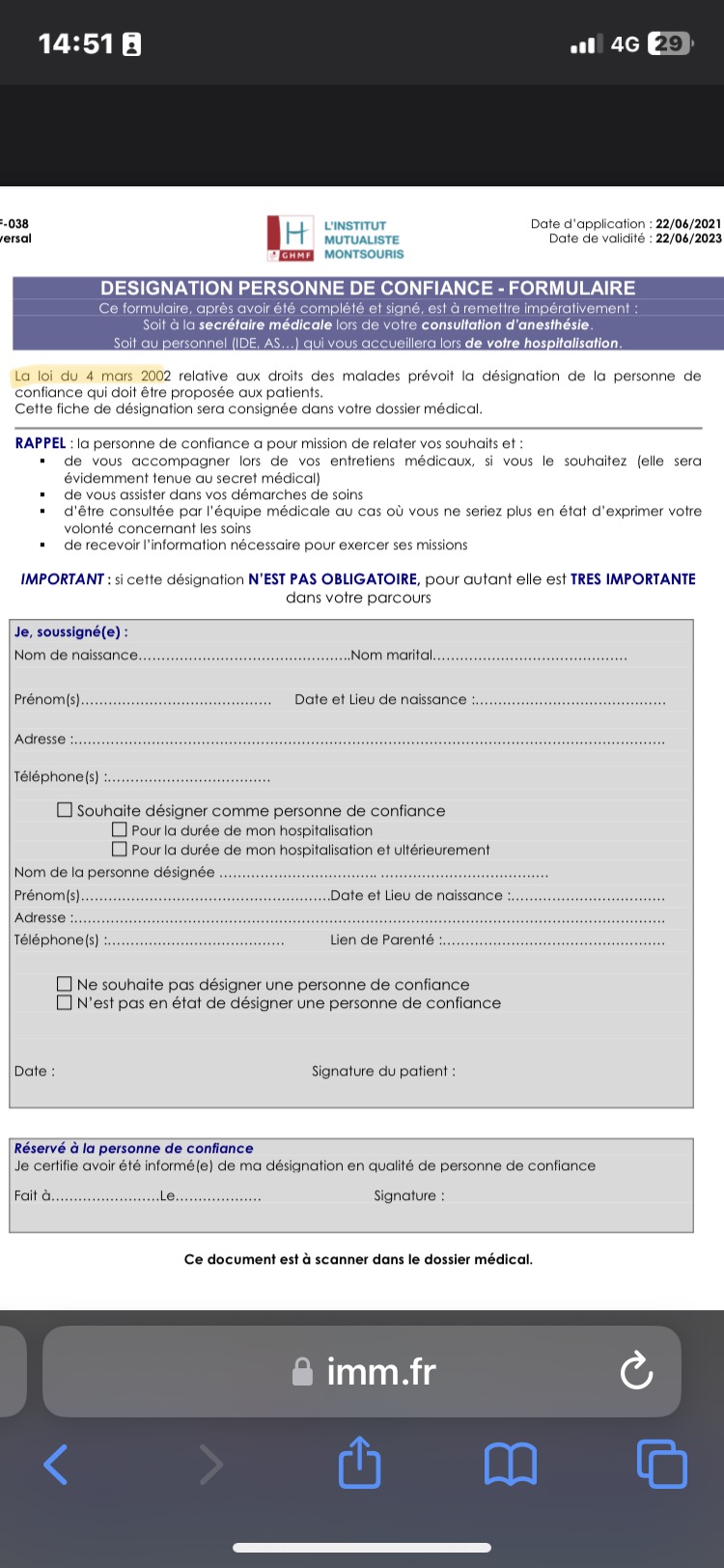 Le patient doit désigner la personne de confiance à chaque hospitalisation et peut changer à tout moment."