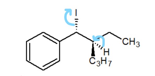 (un en avant et l'autre à l'opposé = en anti donc en arrière) qui est en avant du plan et l'iode en arrière, ils sont dans des plans