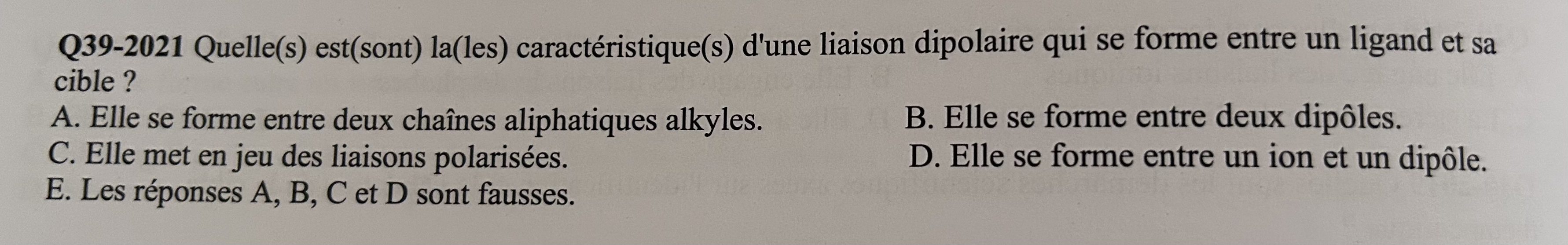 Alors pour ton premier QCM la réponse est BCD, les liaisons dipolaires sont bien des liaisons polarisées !