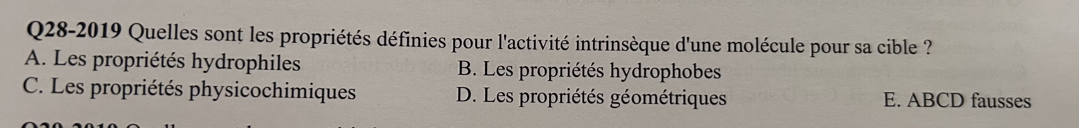 La correction indique que la réponse juste c’est litem D mais c’est pas plutôt pour l’affinité du ligand les propriétés géométriques ??