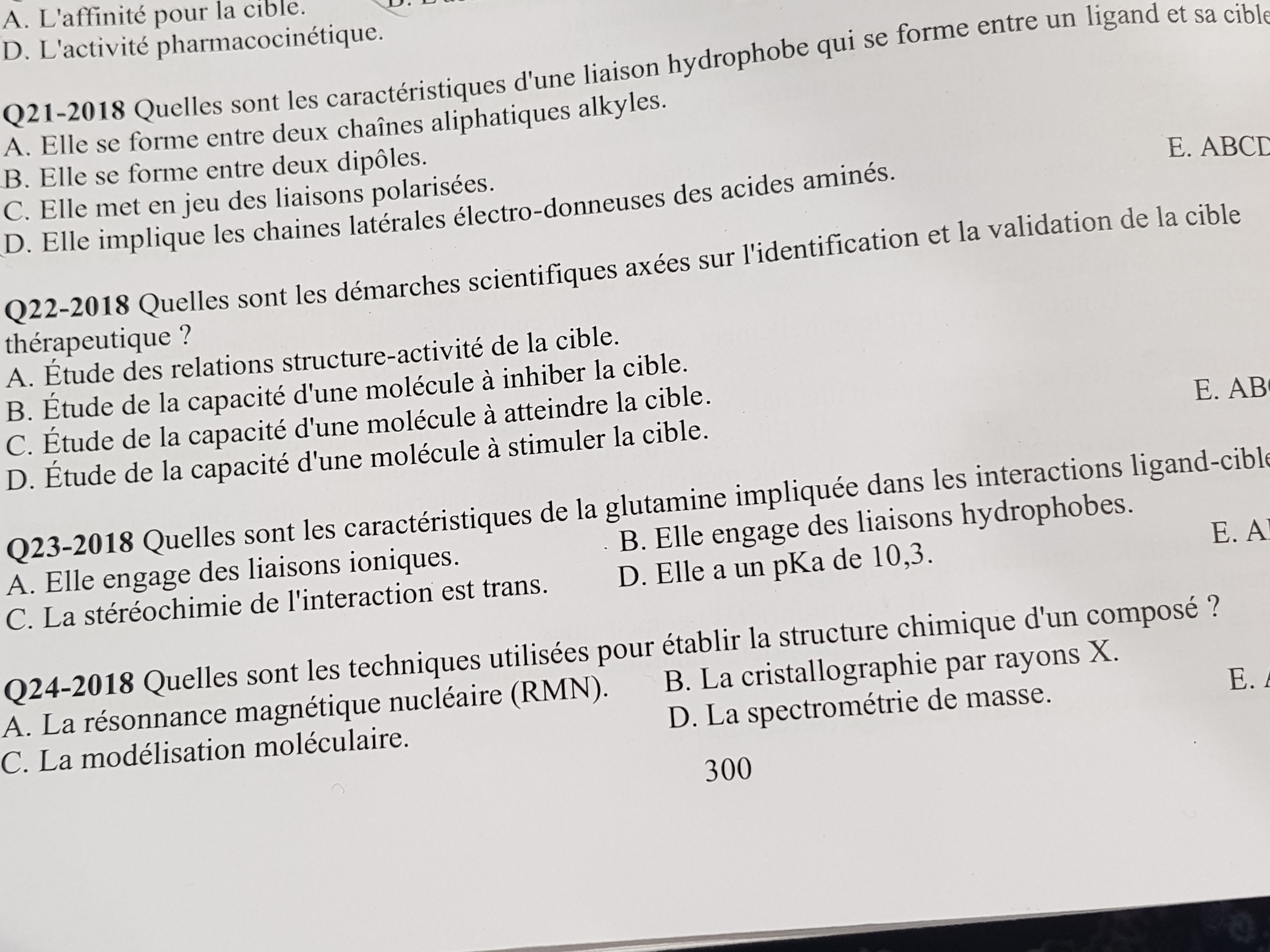 Mais pour les pharmacophores avec leur propriétés pharmacocinétiques, on voit toujours les items “acide-basicité” et “la balance hydrophobe/hydrophile” sont toujours compté justes mais est-ce que si on avait ce qcm:
