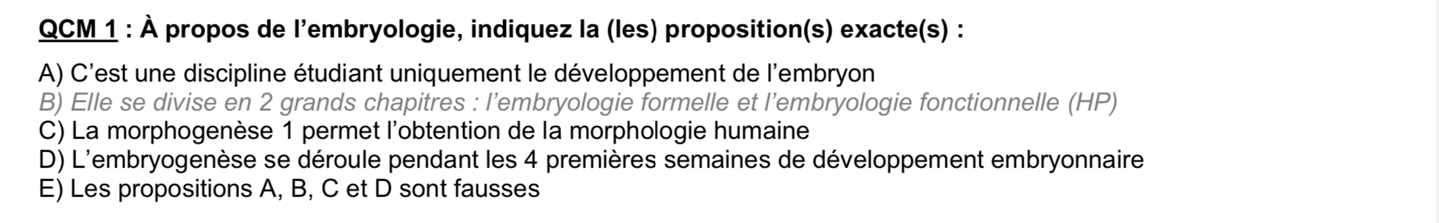 , Dans les annatuts de l’année dernière, l’item D est compté juste pourtant je croyais que l’embryogenèse c’était que pour les 3 premières semaines et que la 4ème c’était pour la morphogenèse 1 ??