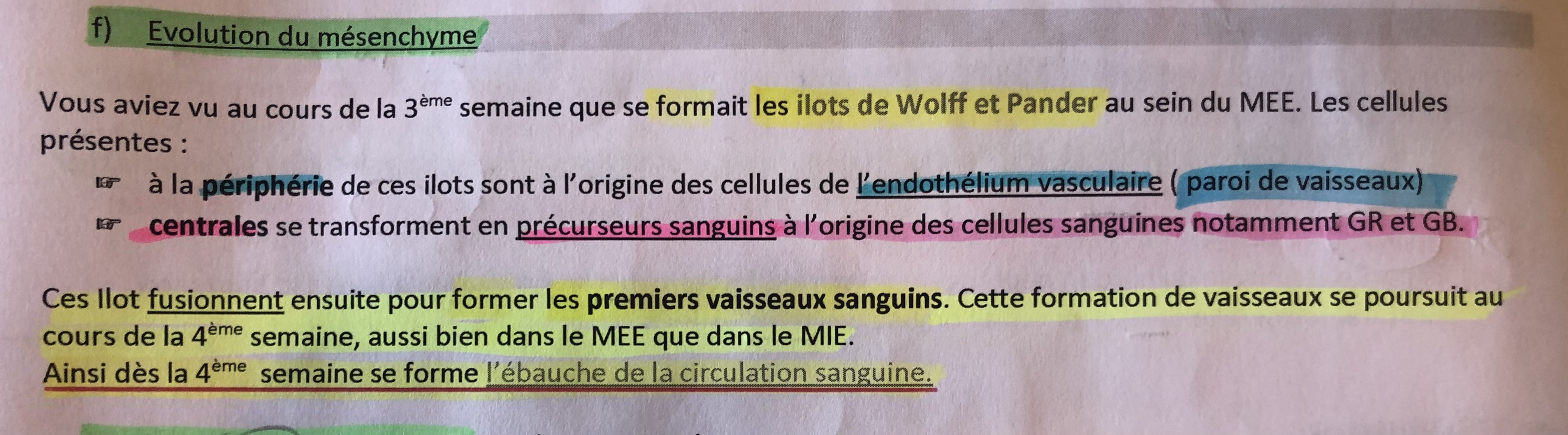 Et en S4 , on n’a cette fois si une vascularisation extra et que intra embryonnaire ( extra avec celle qui c’est formé à la S3) et Intra embryonnaire avec l’ébauche de la mise en place de la circulation sanguine ( qui se passe dans le mesenchyme intra embryonnaire).