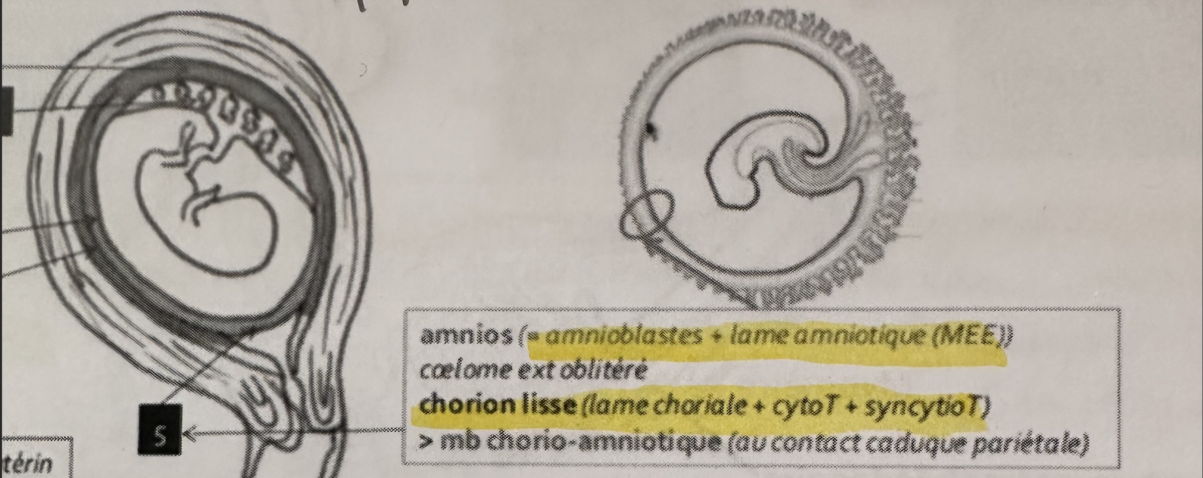 hello, dans la ronéo sur les annexes il y a un screen du diapo de la prof où il est écrit que la membrane chorio-amniotique est en contact avec la caduque pariétale, mais ce ne serait pas plutôt avec la caduque ovulaire qu'elle est en contact, puisqu'elle est plus en dedans ? ou bien on considère que ces 2 caduques ont fusionné et c'est donc une simplification ? merci d'avance