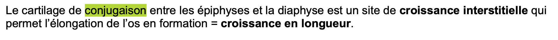 Salut, je ne comprend pas pourquoi cette item est compté vrai : "A) Le cartilage de conjugaison correspond à un site de croissance interstitielle, localisé entre épiphyse et diaphyse"