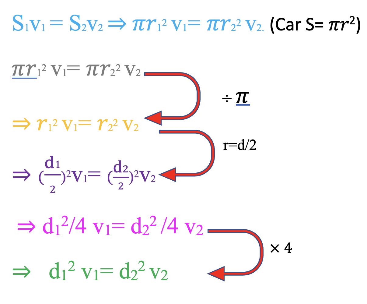 j'ai une question à propos du qcm 2 sur le diapo de circu 1. J'ai du mal à comprendre comment, lors de la question: On considère une sténose localisée au niveau d’une artère. La vitesse du sang avant la sténose est v1= 1 m.s-1. Après la sténose, on un diamètre d2 = 4 mm et une vitesse v2 = 4 m.s-1. Quel est le diamètre avant la sténose : comment on passe de 𝜋𝑟1 2 v1= 𝜋𝑟2 2 v2 cette étape à d12 v1 = d22 v2 à ça. A vrai dire je ne comprends pas comment on arrive à trouver le diamètre au carré en simplifiant.