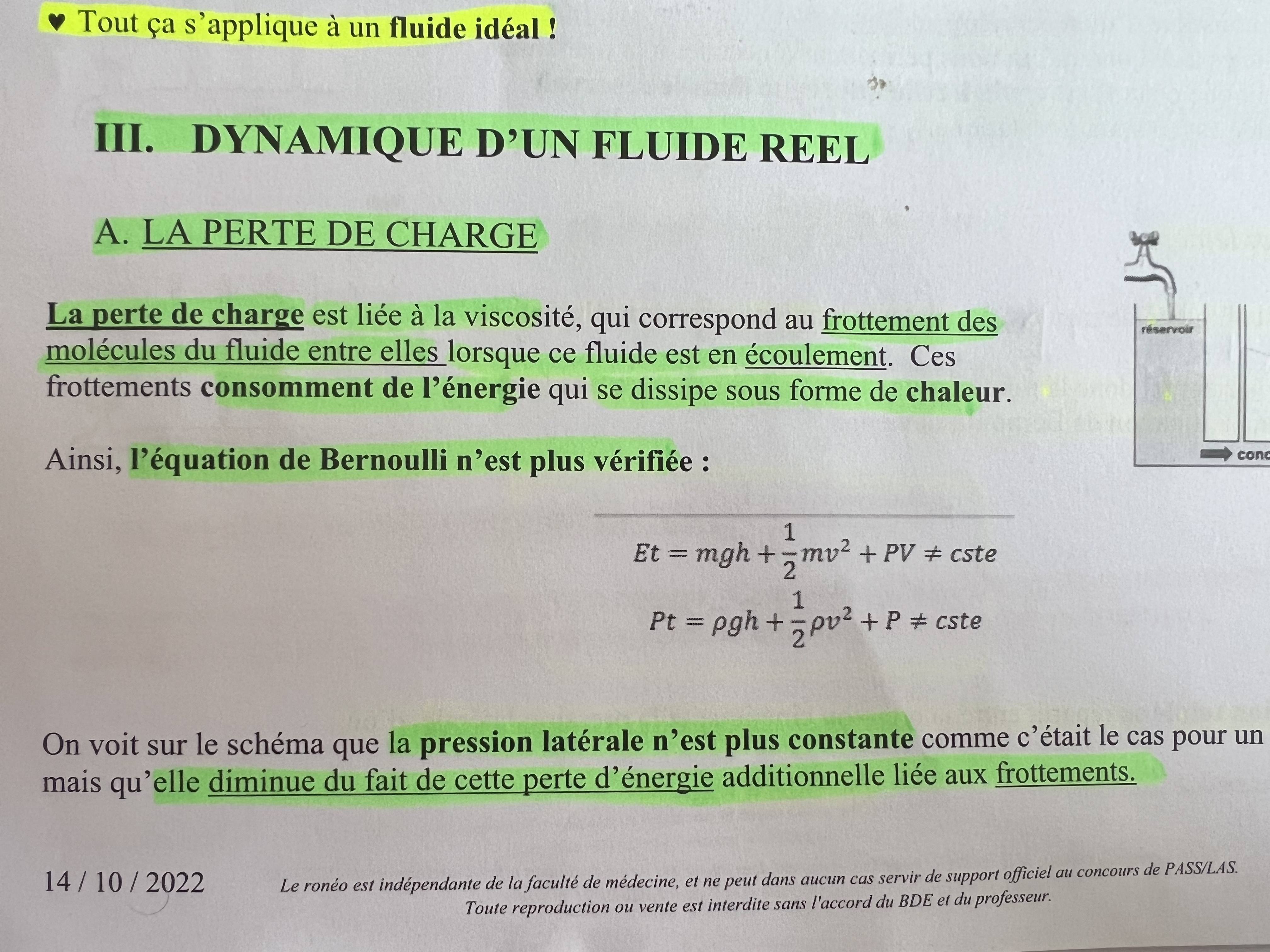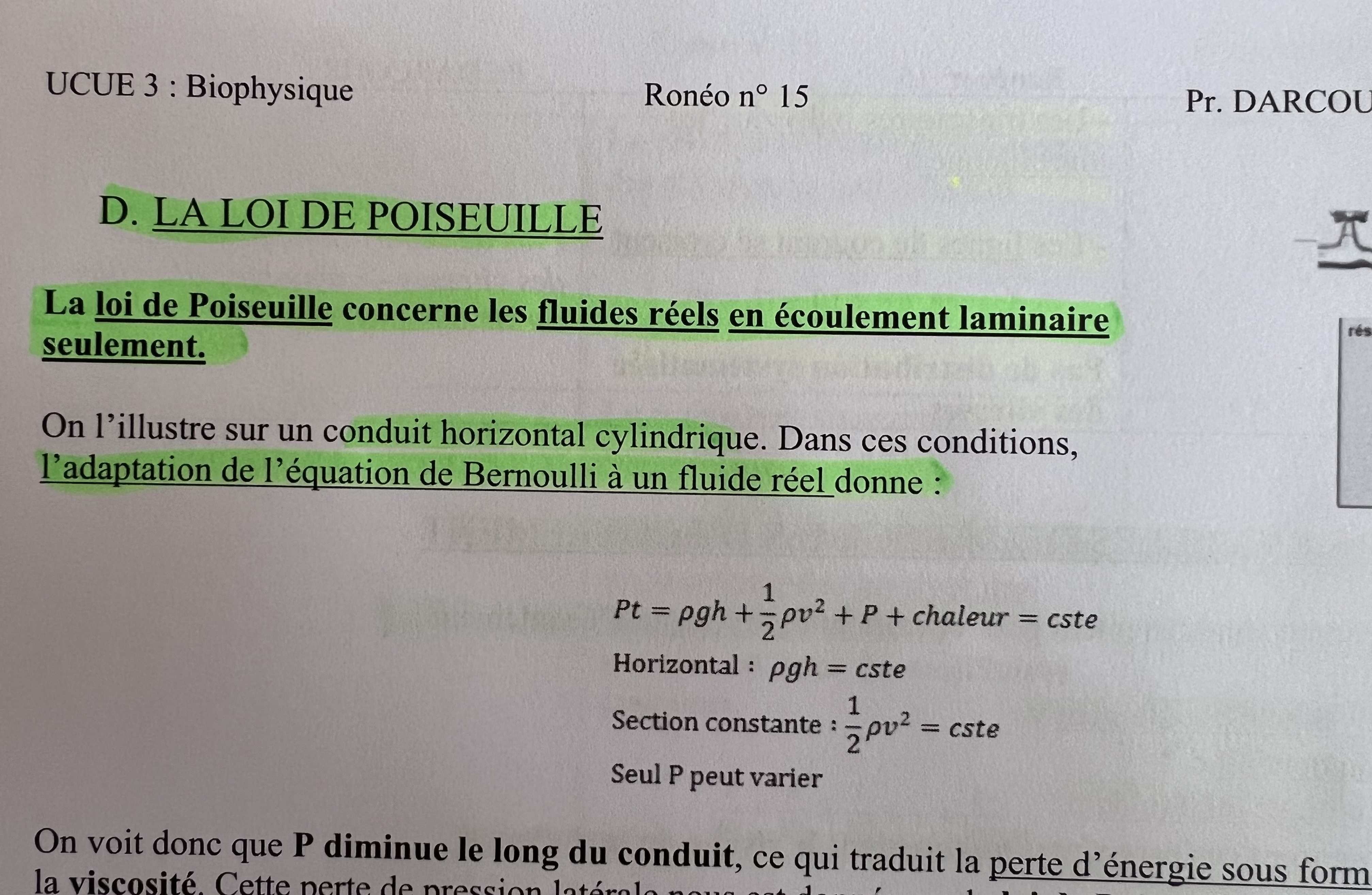 En gros, le prof montre l’adaptation de la loi de Bernoulli à un fluide réel en ajoutant la chaleur.