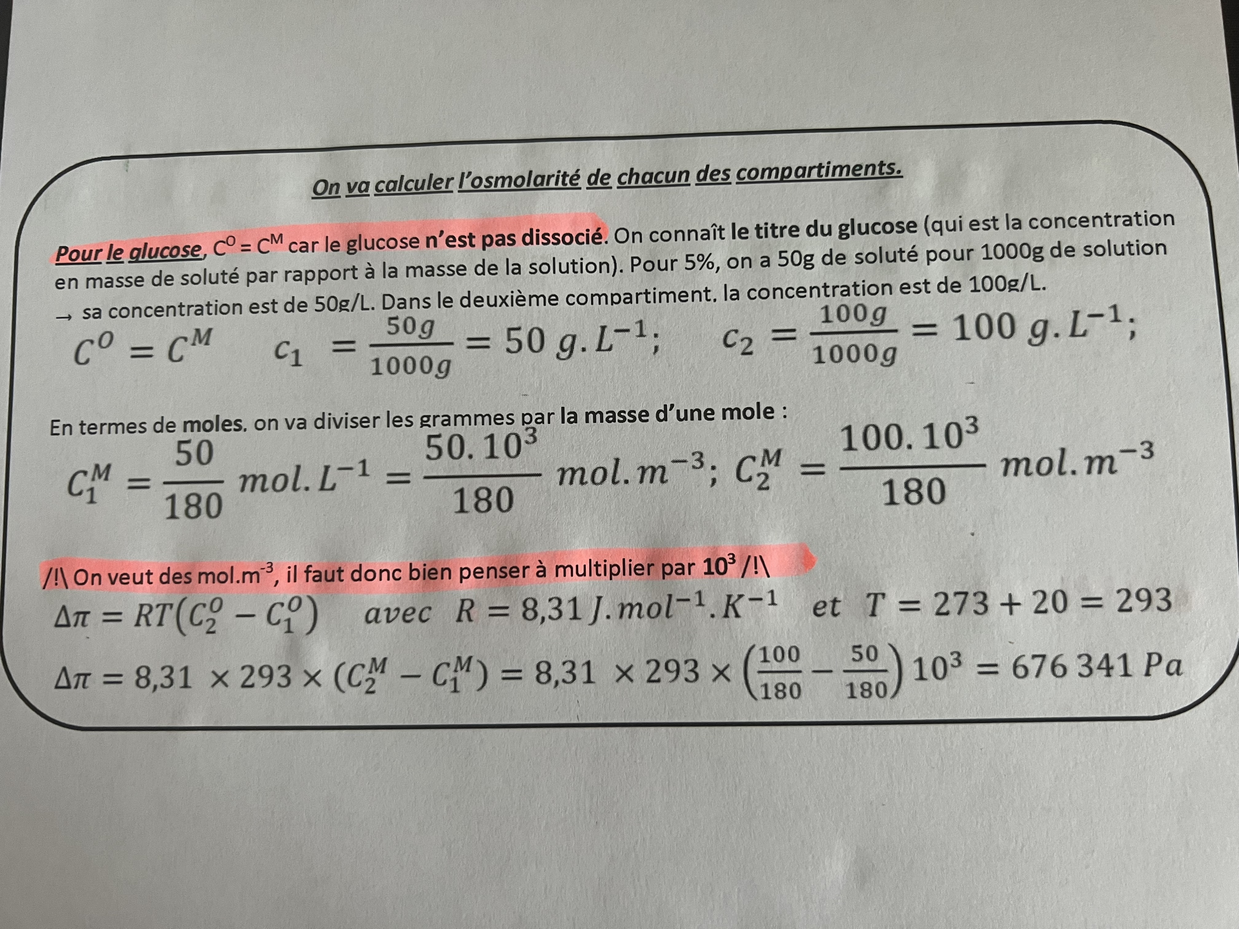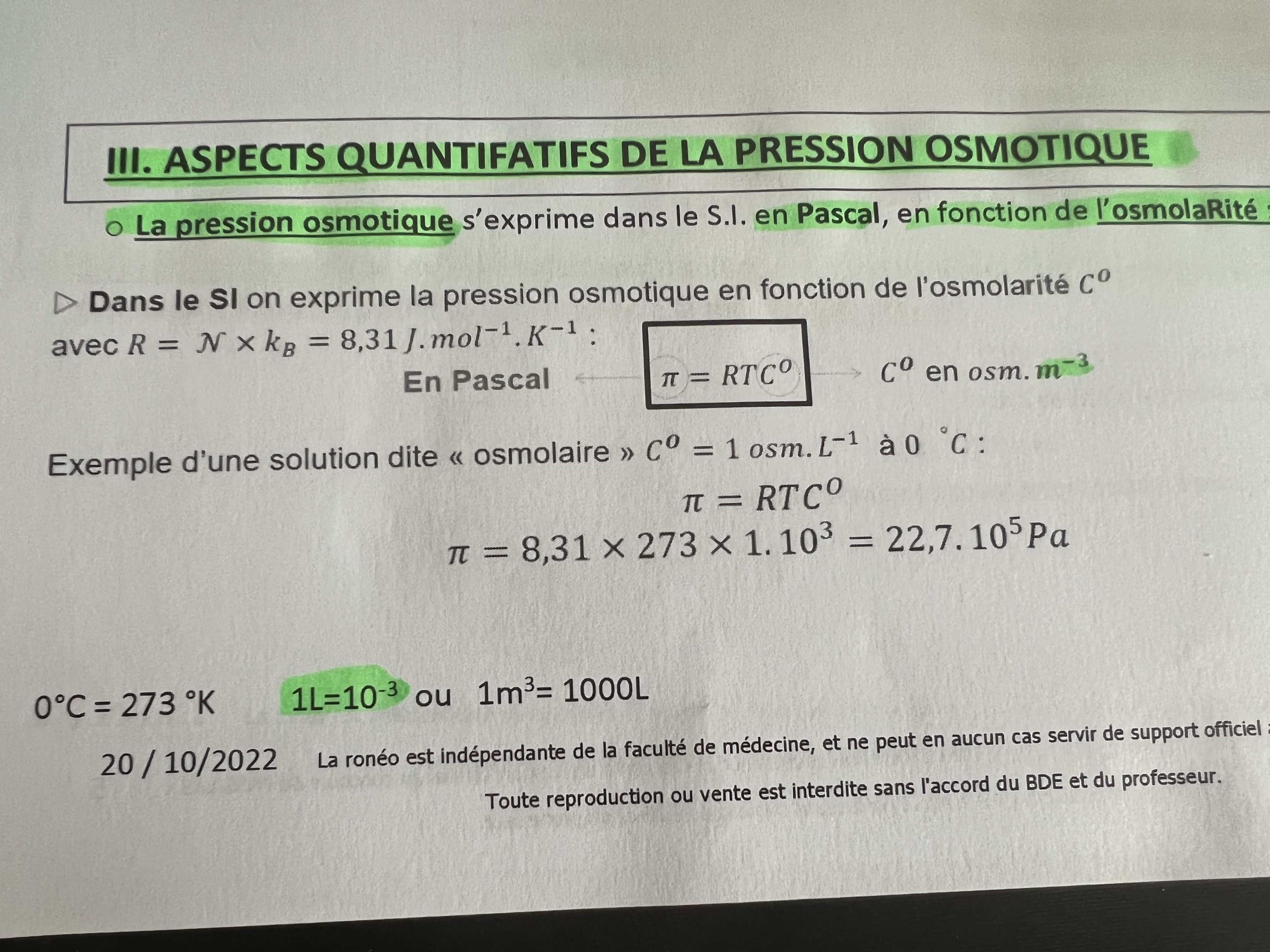 Maintenant sur la photo du cours que tu me montre le volume (en L) est au dénominateur donc 1/L = 1/10^_3 m^3, on est d'accord ?