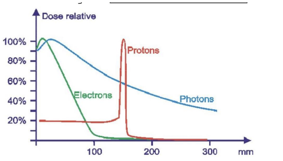 Les photons X et Gamma sont effectivement assez pénétrants, ils déposent, certes, une grande partie de leur énergie au début mais ils vont malgré tout aller en profondeur dans les tissus ce qui implique un dépôt d'énergie possible à ce niveau là de plus faible intensité (contrairement aux électrons, par exemple, qui déposent leur énergie dans les premiers cm de tissus puis basta)
