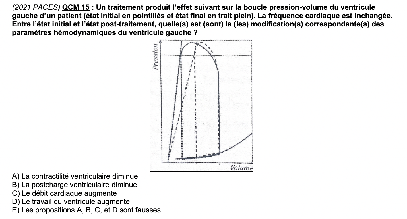 Donc ici on a bien VES augmenté donc débit cardiaque augmenté aussi, et l'aire du diagramme est augmenté donc augmentation du travail !