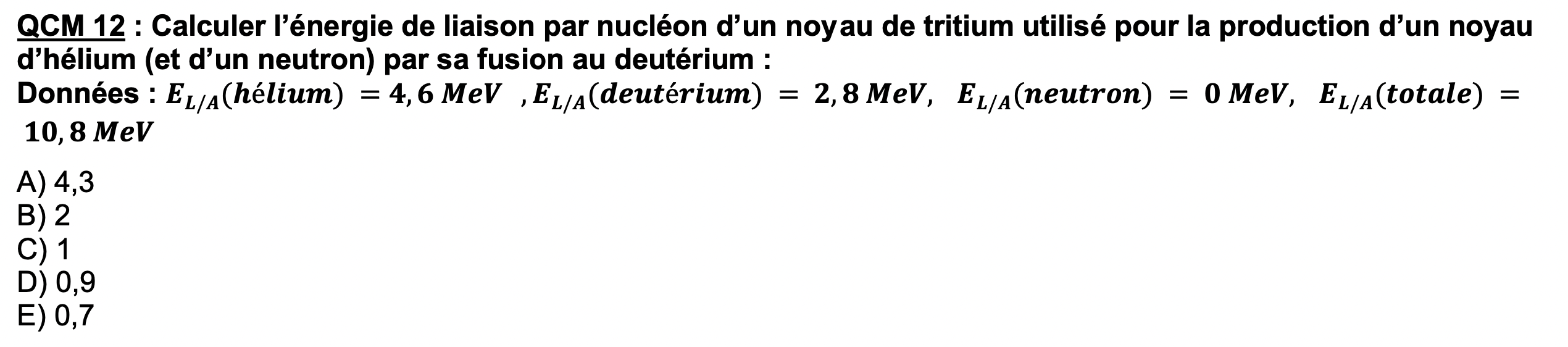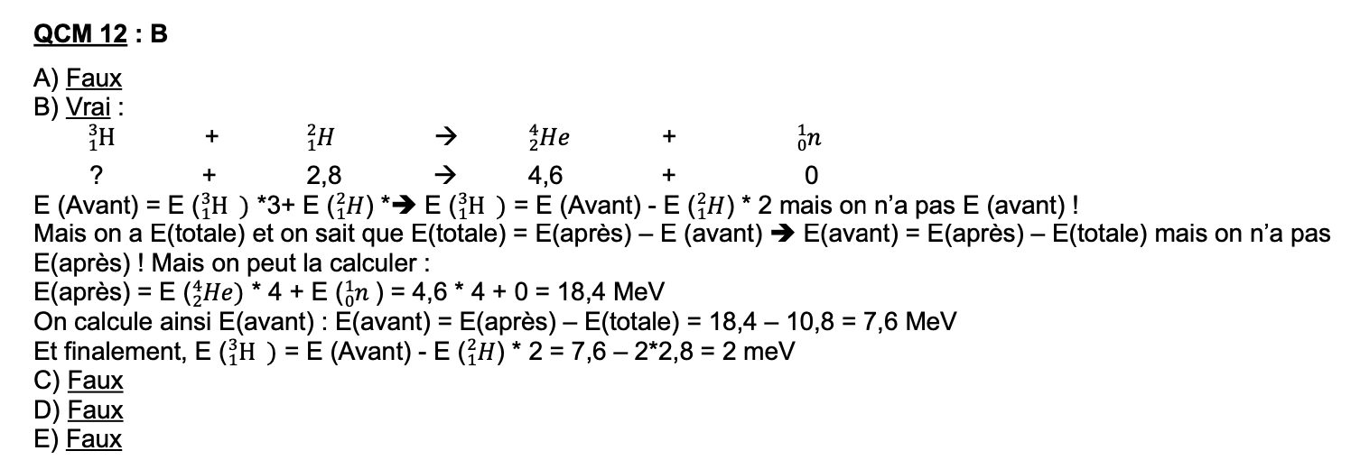 Comme on cherche E(tritium), on l'isole et sur la correction il y a marqué : E(tritium) = E(Avant) - E(deutérium) x 2