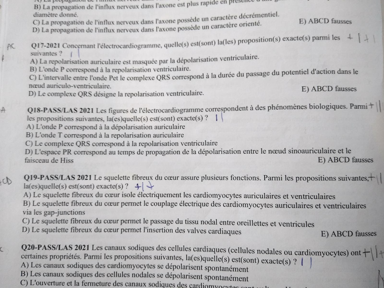 D) Le segment ST correspond à la phase 2 de repolarisation des cardiomyocytes -> compté vrai