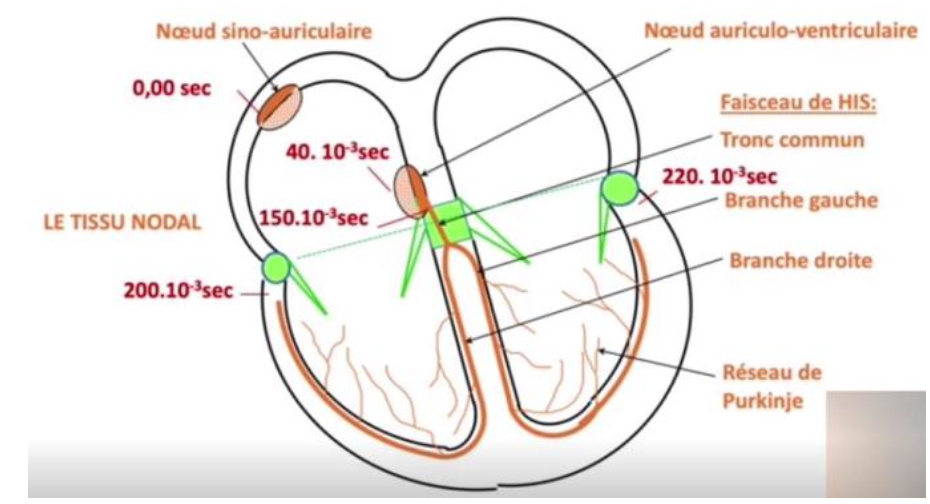 Et oui du coup c'est équivalent à la durée de conduction jusqu'au NAV + durée de conduction dans les ventricules. Et je ne sais pas si la conduction dans les ventricules comprend ou pas le réseau de purkinje mais je pense que même si c'était le cas la durée de conduction dans les fibres de purkinje serait négligeable. Mais encore une fois ça vient du schéma donc si le prof faisait ce même qcm ce serait jamais pour piéger sur fibre de purkinje/faisceaux de His 0_o