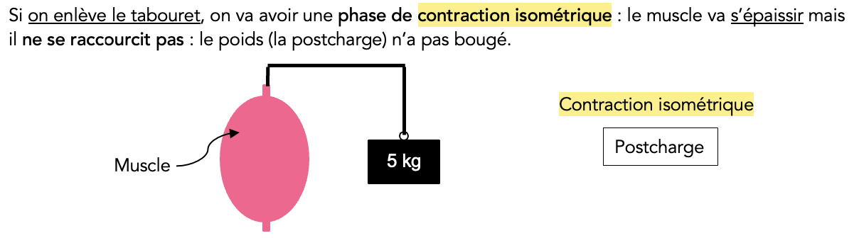 En fait je ne comprends pas comment la post-charge peut s'opposer à la contraction isométrique sachant qu'il n'y a ni raccourcissement ni travail pour cette dernière. Quand on dit que la post-charge s'oppose à l'éjection systolique je comprends par contre là je vois pas trop.
