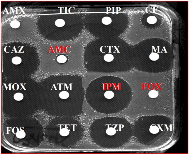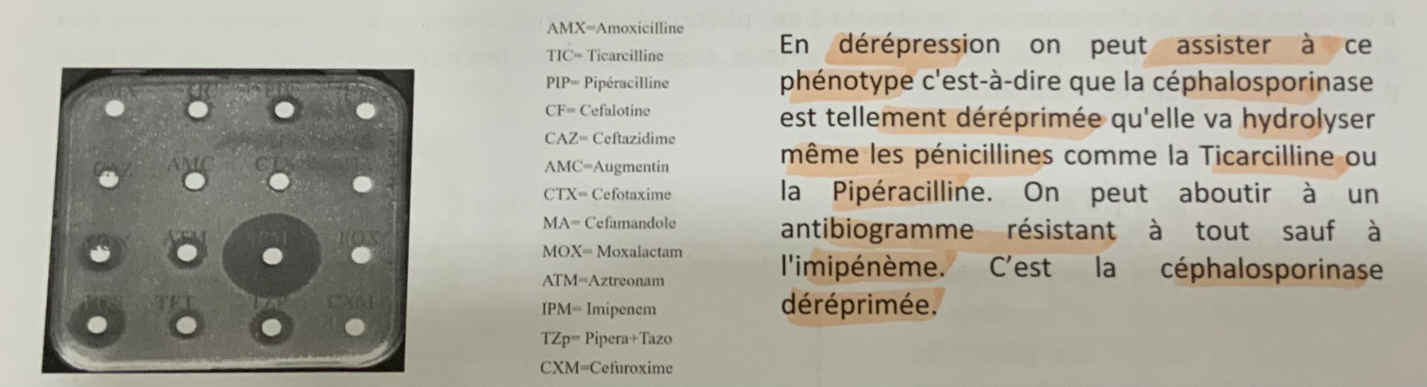 antibiotique. Que ce soit dans l'antibiogramme du phénotype sauvage, comme celui du phénotype mutant (avec la céphalosporinase déréprimée).