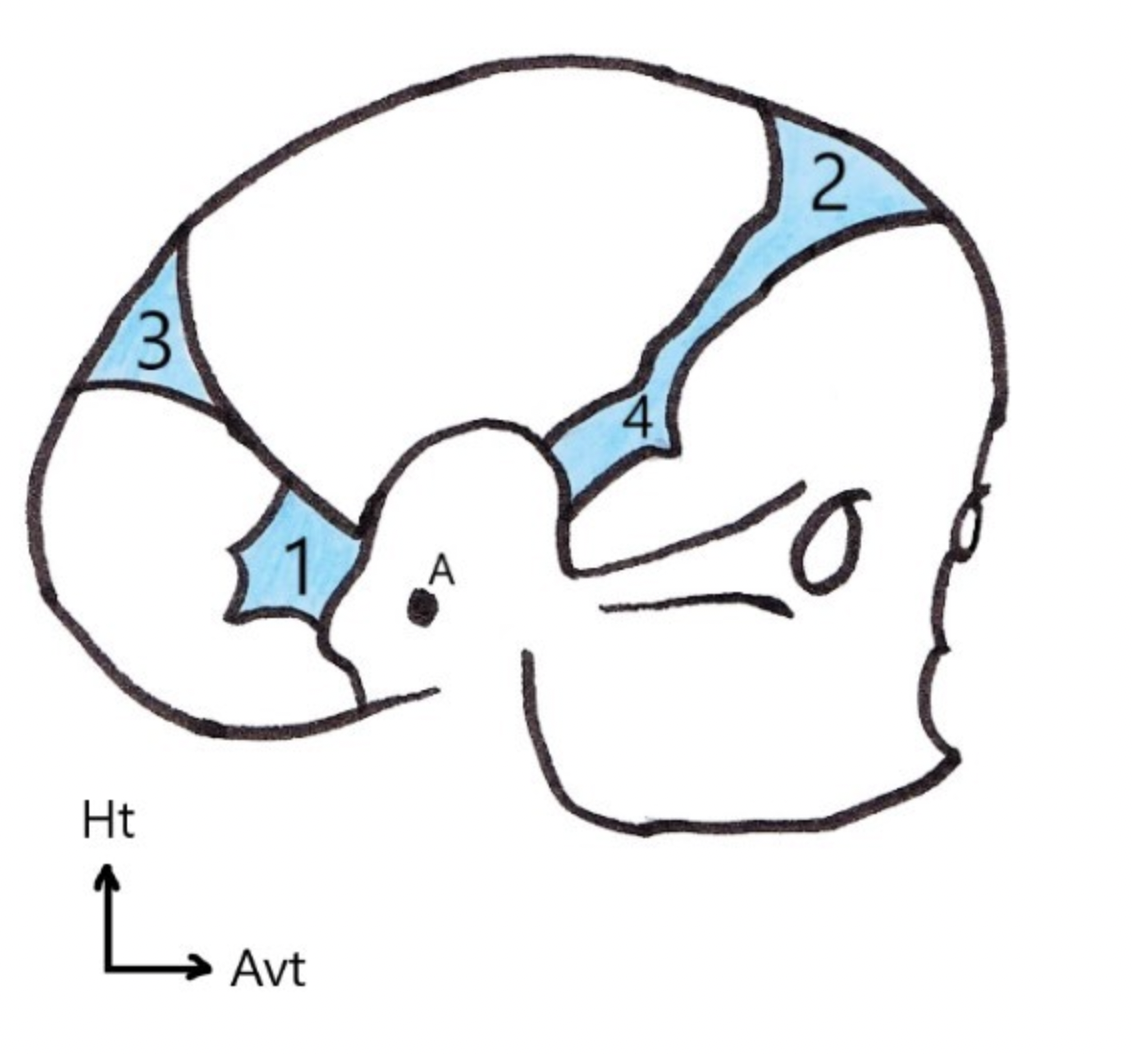 Ceci est notamment visible sur le schéma ci dessous, où la fontanelle ptérique est représentée en 4.