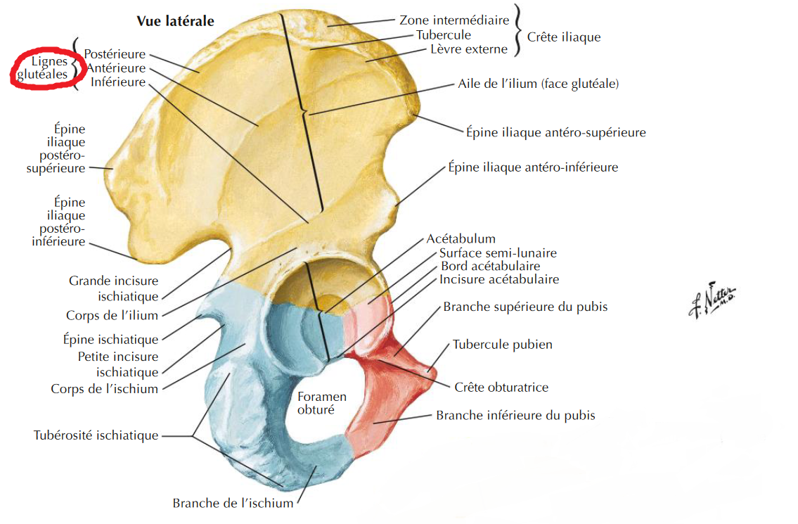 je voulais avoir confirmation que les crêtes glutéales correspondent bien aux crêtes iliaque + les bords latéraux du sacrum?