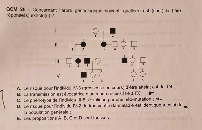 je ne comprends pas l'item C, pourquoi il ne pourrait pas être atteint de par son grand père paternel, et il y aurait eu un saut de génération avec sa mère...?