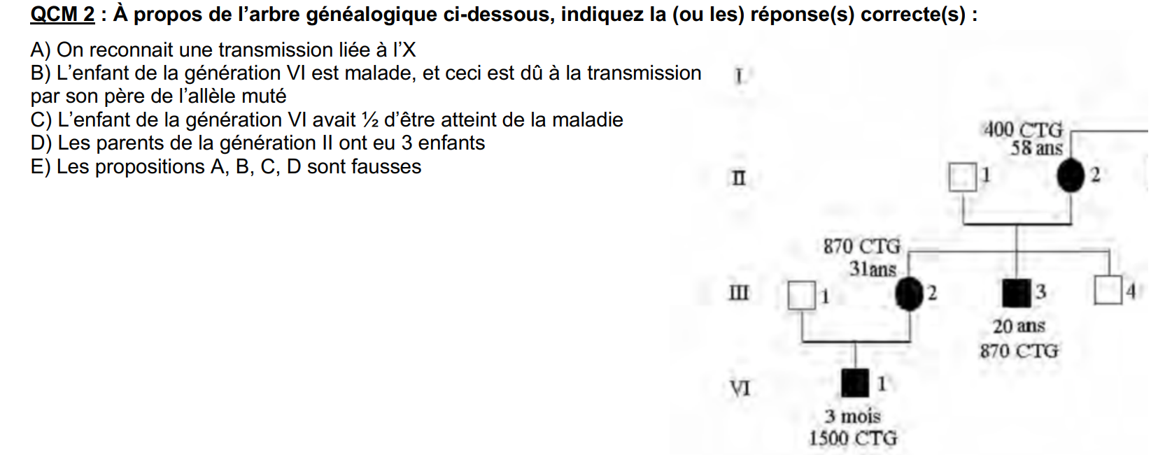 Correction : A) Faux : si ça avait été le cas, on aurait eu des femmes porteuses ≠ atteintes. Ici è transmission dominante