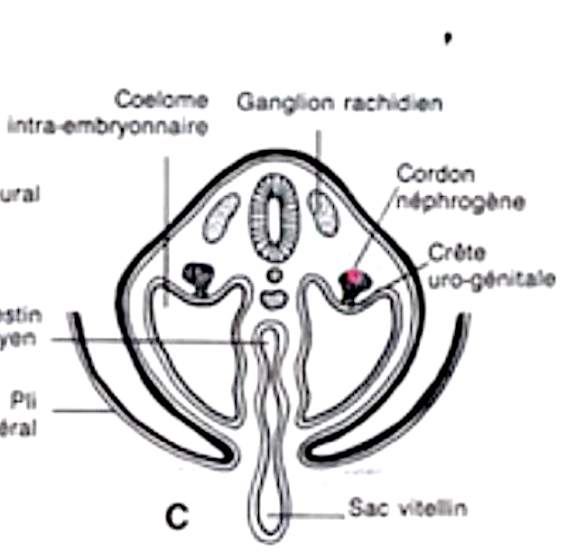 les gonades sur l'embryon ne sont pas visible sur le schéma que tu me montres, en revanche je te met le schéma qui correspond ou les gonades seront situés au niveau des crêtes génitales a partir d'ici on aura cette migration des cellules qui se fera de L'EXTERIEUR a L'INTÉRIEUR (pour reprendre ta flèche). J'espère que c'est un peu plus clair aprés c'est vraiment de l'embryo la, les tuteurs spécialisé dans cette matière t'expliquerons peut être mieux au S2. (Petit tips cadeau