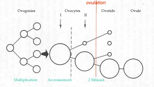 je t'ai remis ce schéma, où on voit que la cellule mère donne 2 cellules : l'ovocyte (très gros) + le globule polaire (tout petit)