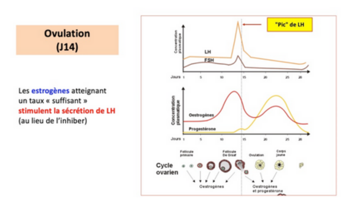 Est-ce que ce n'est pas un peu avant J14 que cette sécrétion est stimulée ? Vers J12-13 ? Permettant notamment l'ovulation à J14.