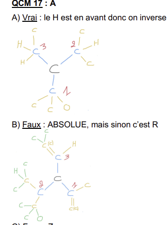 Et si tu as trois liaisons dans le plan et une à l'avant et le groupement le moins substitué est situé sur une des 3 liaisons dans le plan, tu vas devoir imager qu'elle se situe à l'arrière du plan. En soit ça ne change rien, il faut juste déterminer un sens si c'est dans le sens horaire des aiguilles d'une montre ou inversement.