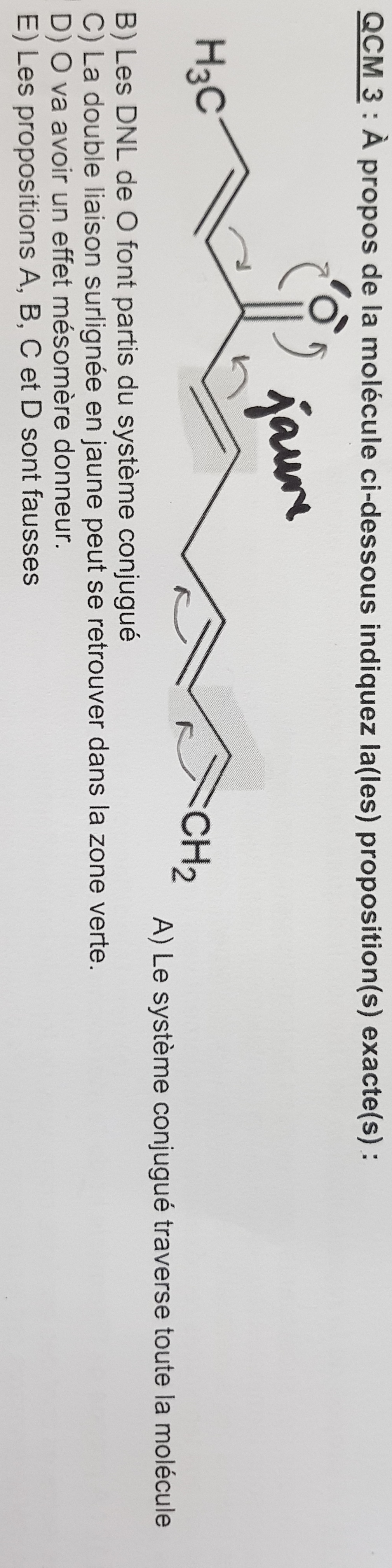 Pourriez-vous me confirmer que j'ai bien compris le sens de migration des électrons des 3 mesomeries de ce QCM 3 svp (je l'ai ai fait au crayon sur la photo) ?