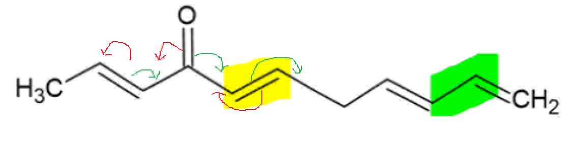(enfin j'espère) ! Premièrement on mets en évidence tous les systèmes conjugués de la molécule :