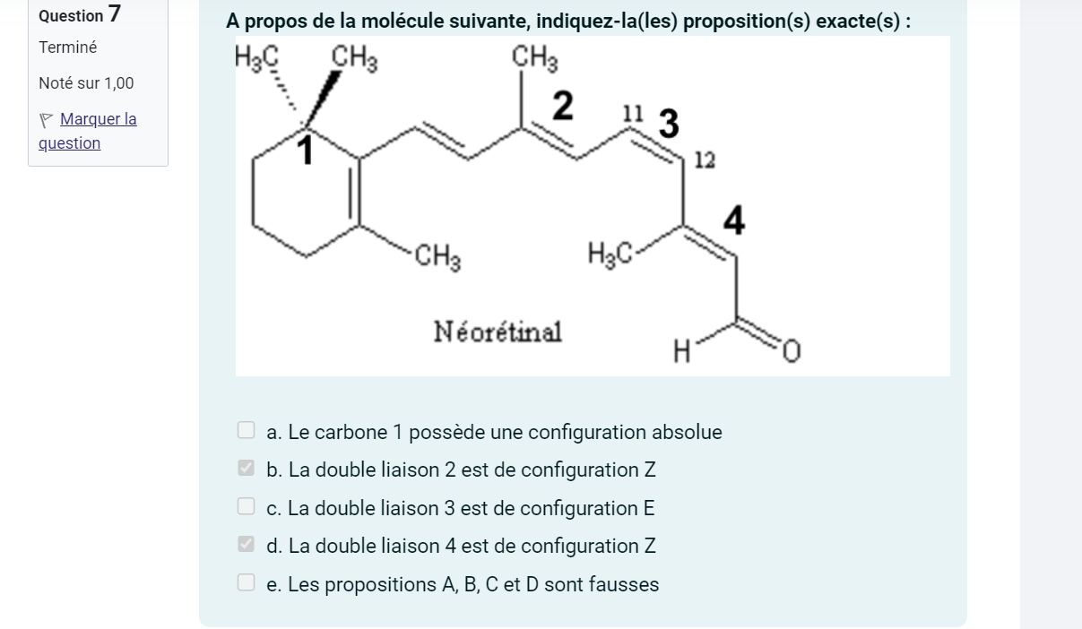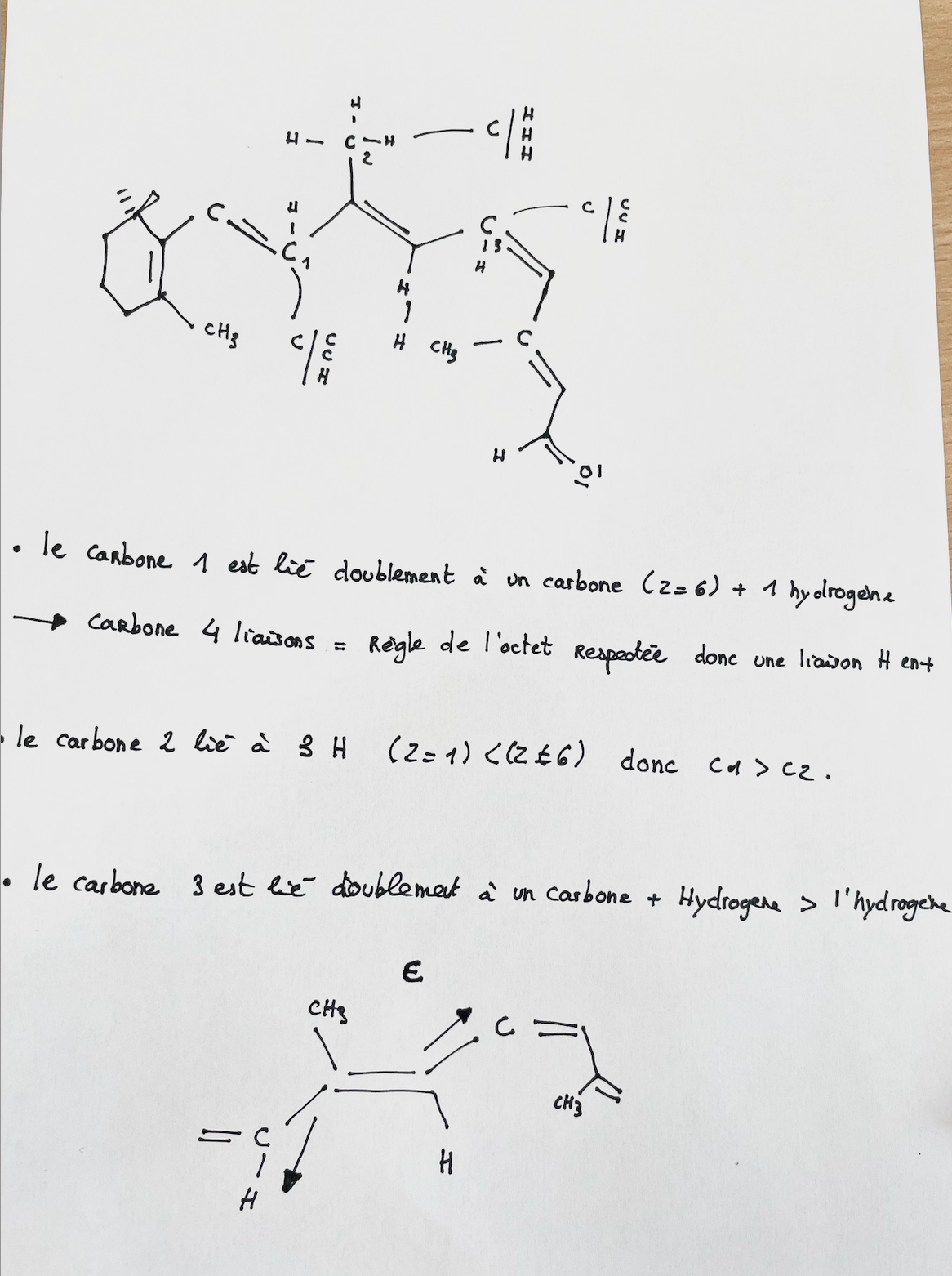 Dans ce cas, pourquoi pour cette molécule la double liaison 2 n'est pas Z (d'après la correction les groupements sont opposés) je ne comprends pas, j'obtiens cela :