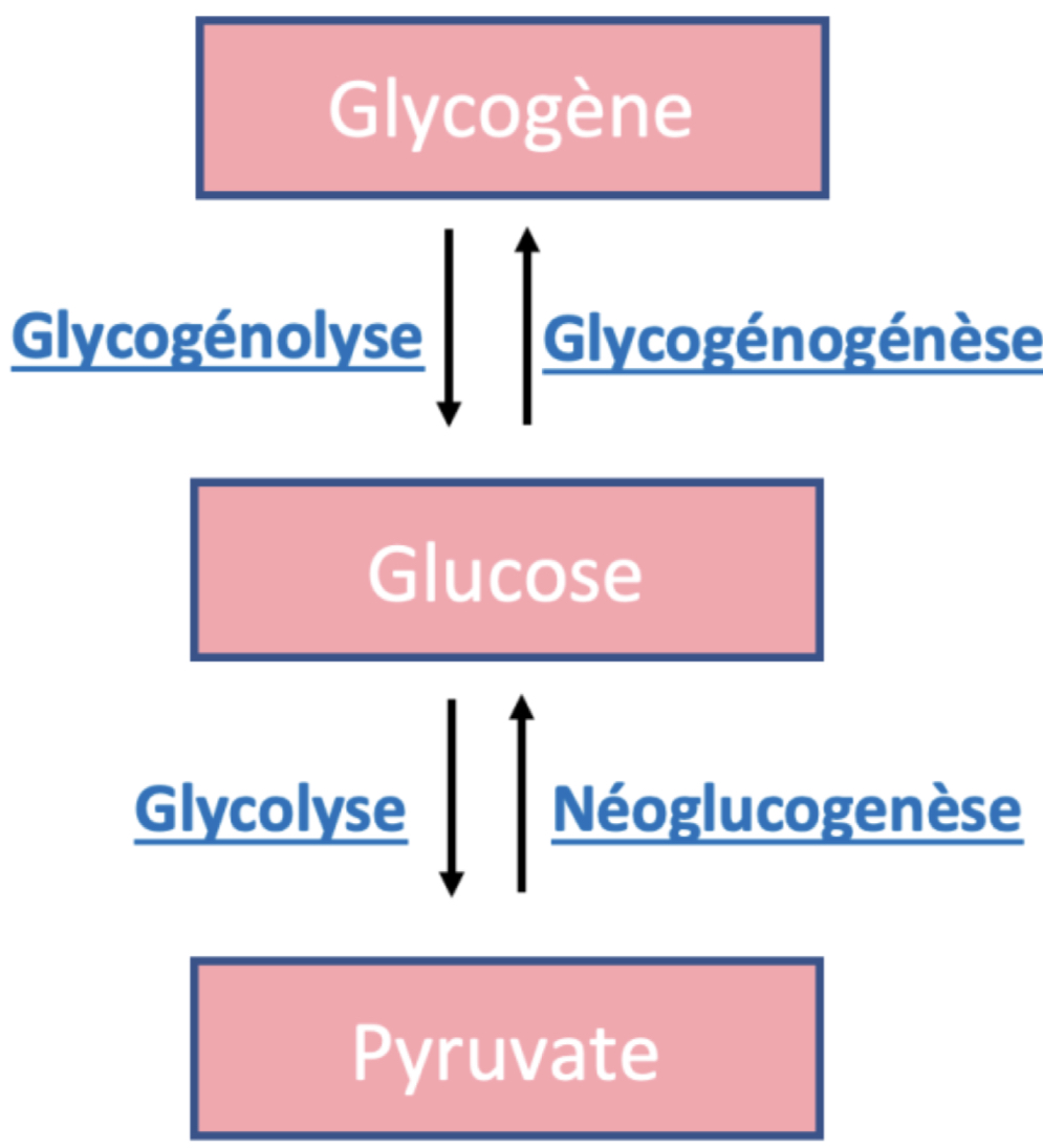 - dans GGL = glycogène -> glucose