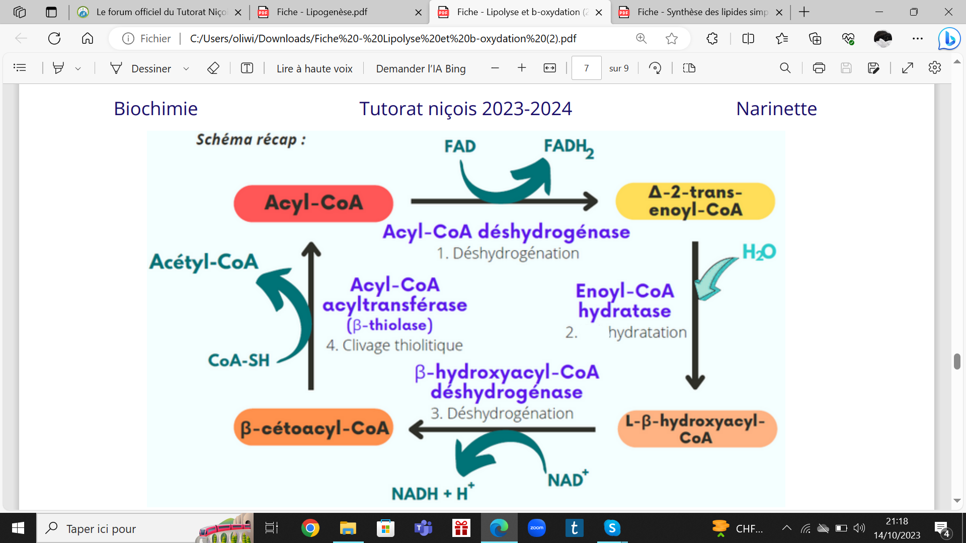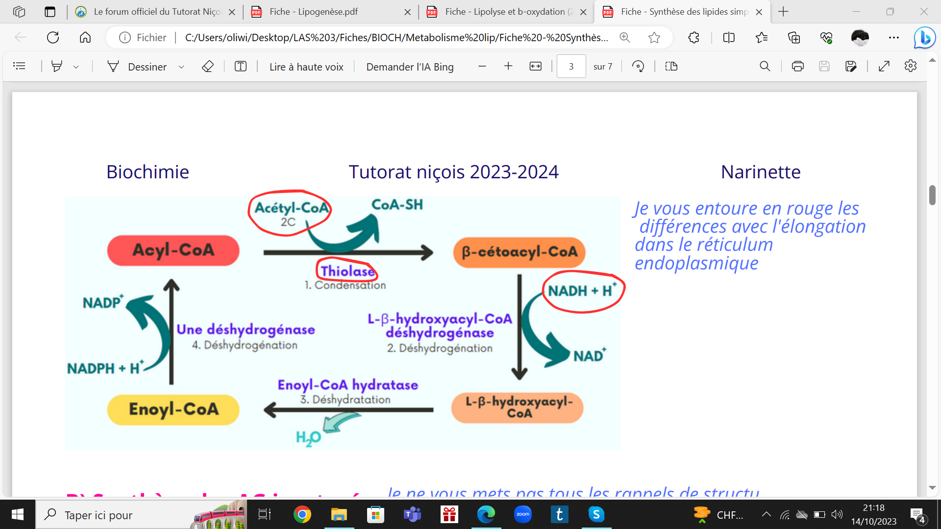 En apprenant cette fiche je me suis rendue compte que les étapes de la béta oxydation sont exactement l'inverse des réactions de la synthèse des lipides simples (élongation AG insaturés dans la mitochondrie) à l'exception d'un intermédiaire. Pourtant on dit que la réciproque de la beta oxydation est la lipogenèse (ce que je veux bien comprendre) mais ça m'a perturbé de voir cette ressemblance entre ces deux réactions alors qu'on n'en parle pas du tout