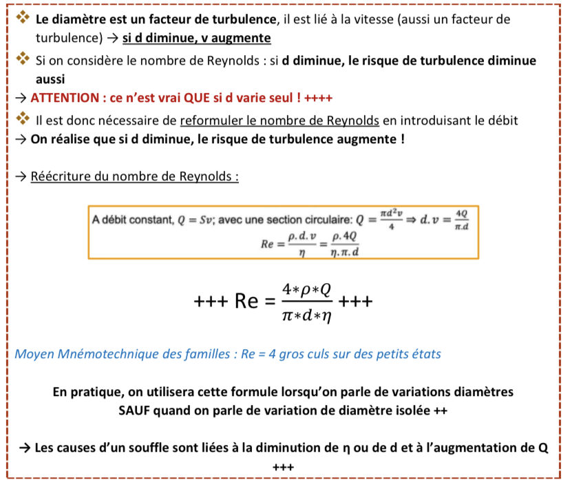 Re= (p x d x v)/n =(p x 4Q)/ n x π x d (à l'avant dernière page du cours) et il y a une contradiction non? vu qu'on dit que lorsque le diamètre diminue le risque de turbulence diminue et après on dit qu'il augmente lorsque d diminue.