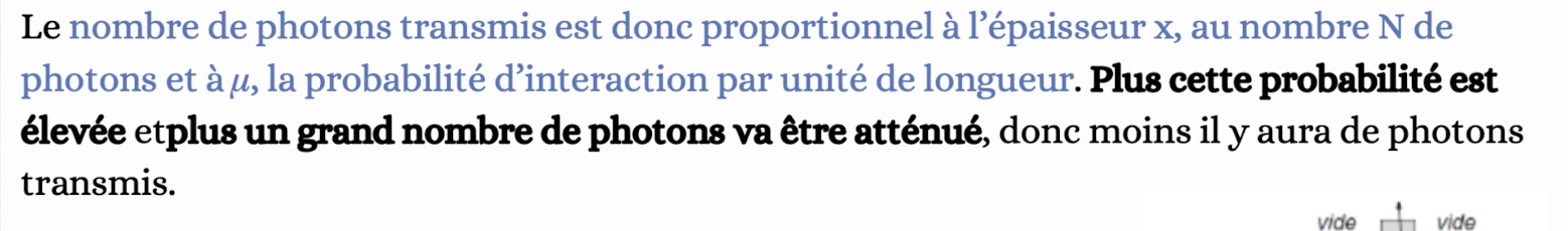 Donc plus les photons vont interagir, plus il y aura de photons atténués, moins il y aura de photons transmis!