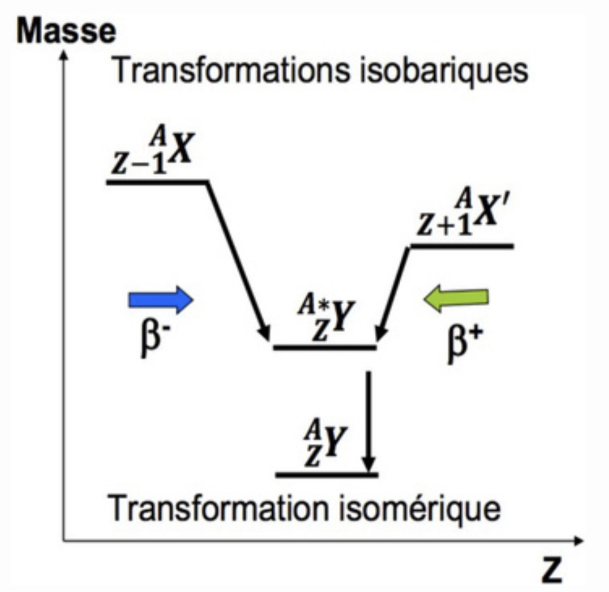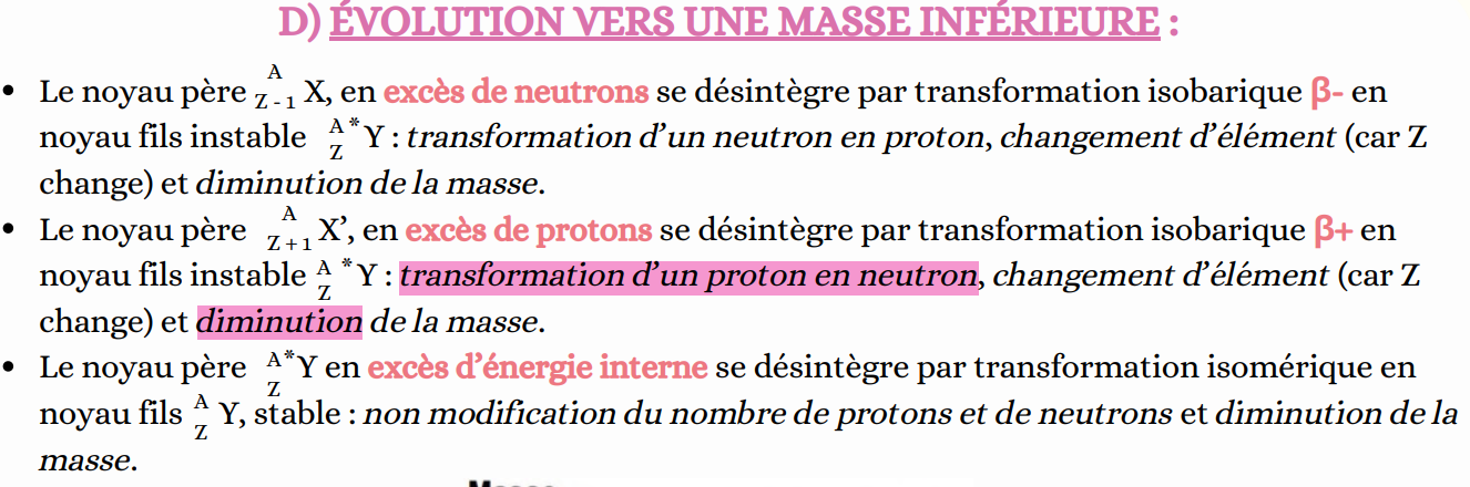 "en excès de protons", le mot "excès" témoigne de quelque chose de pas très stable. Donc les transformations (Béta+, Béta-, CE...) vont permettre de pallier à ce problème d'excès et vont donc donner des