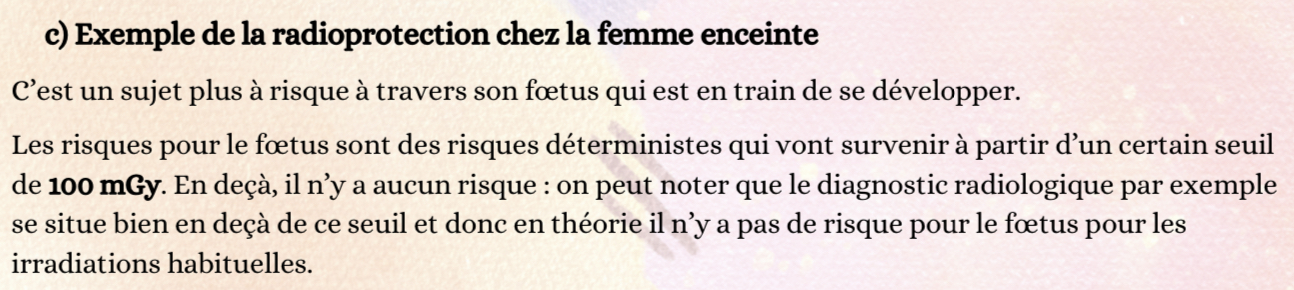 Les risques déterministes se situent au dessus de 100 mGy