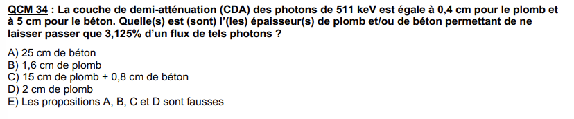 Si 0,4cm de plomb = 1 CDA et qu'il faut 5 CDA pour avoir une transmission de 3,125%, on doit donc avoir 5*0,4 = 2cm.