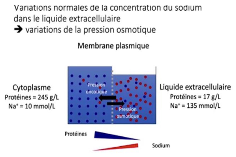 Est-ce parce que le sodium entraîne une baisse de pression osmotique et donc en parallèle une augmentation de pression oncotique ?