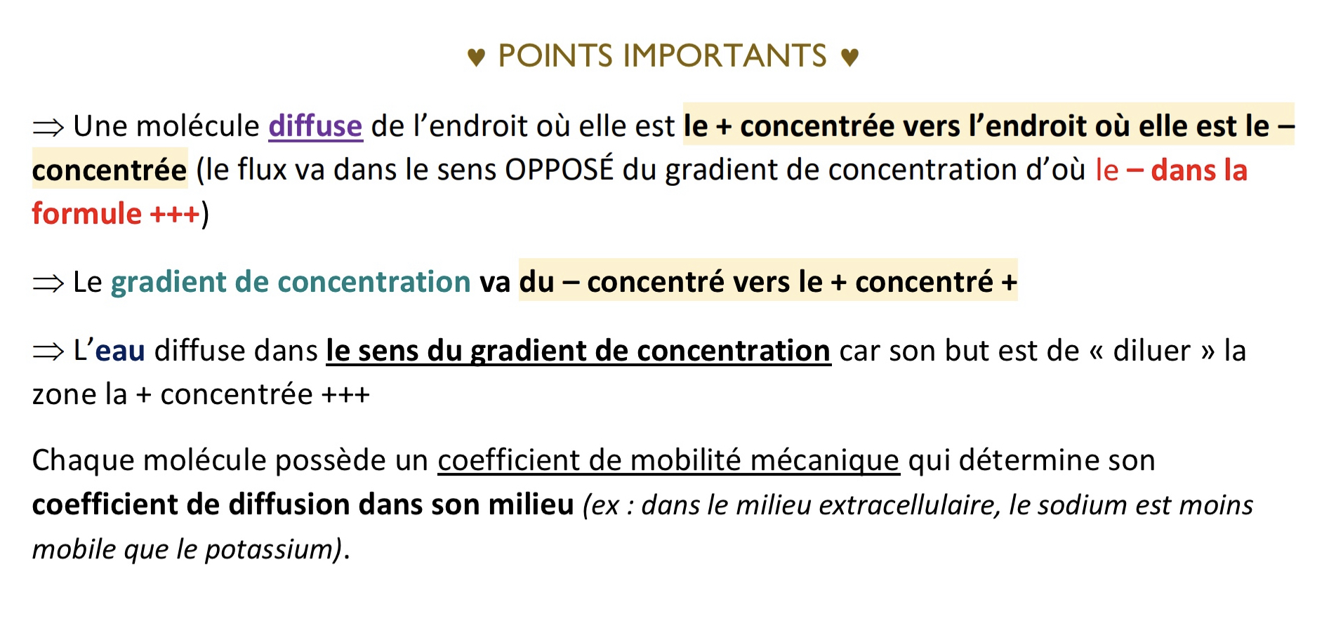 Dans le cours c’est bien indiqué que la diffusion et le gradient de concentration sont dans des sens opposés.
