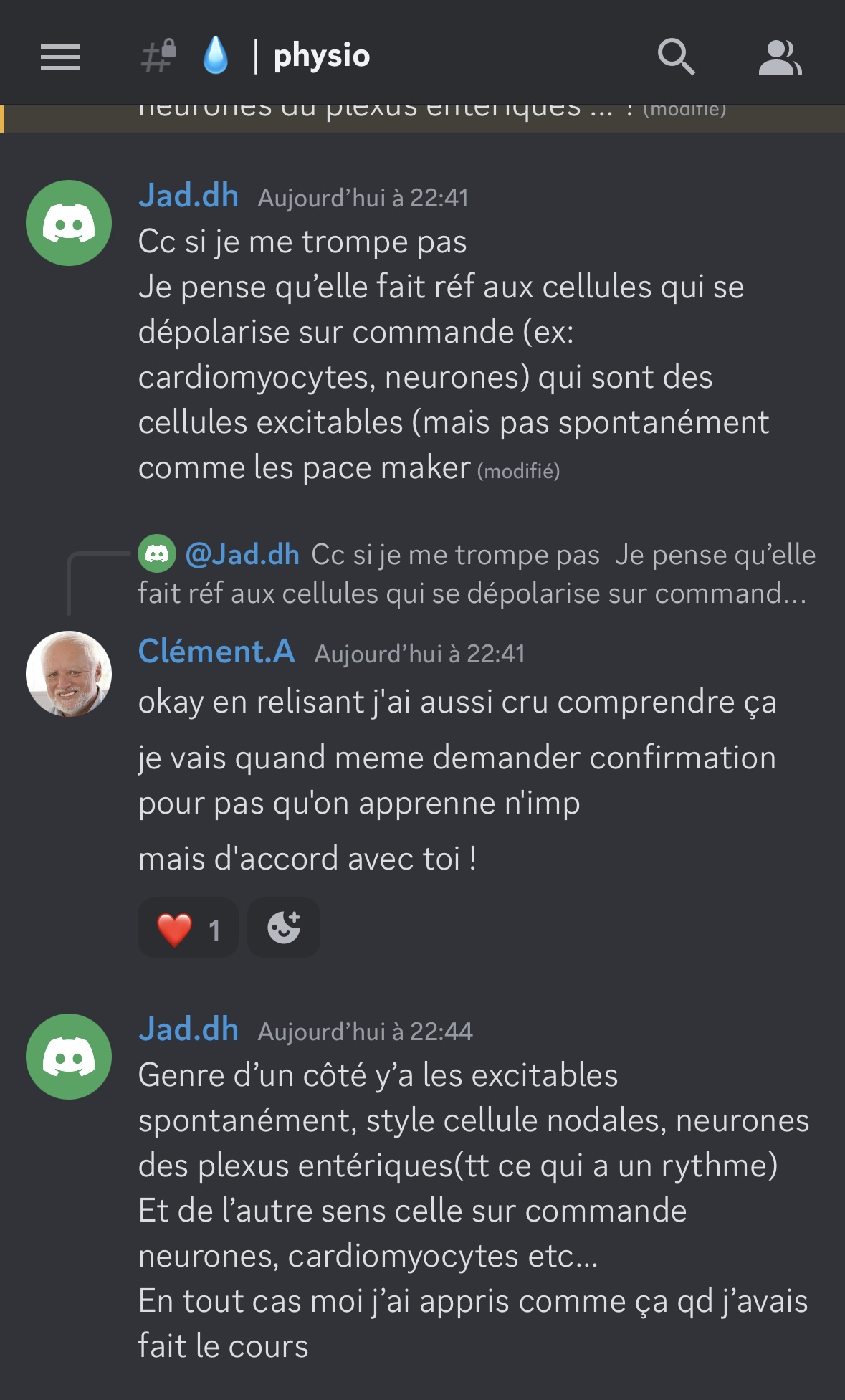 Coucou ! Je confirme avec confirmation, la ligne sur les cellules excitables mais pas spontanément se référait effectivement à la liste juste au-dessus. Les cellules nodales et les plexus entériques sont bien des Pace makers. Je remets l'explication que qqn a très justement donnée sur Discord pour que tout le monde puisse la voir.