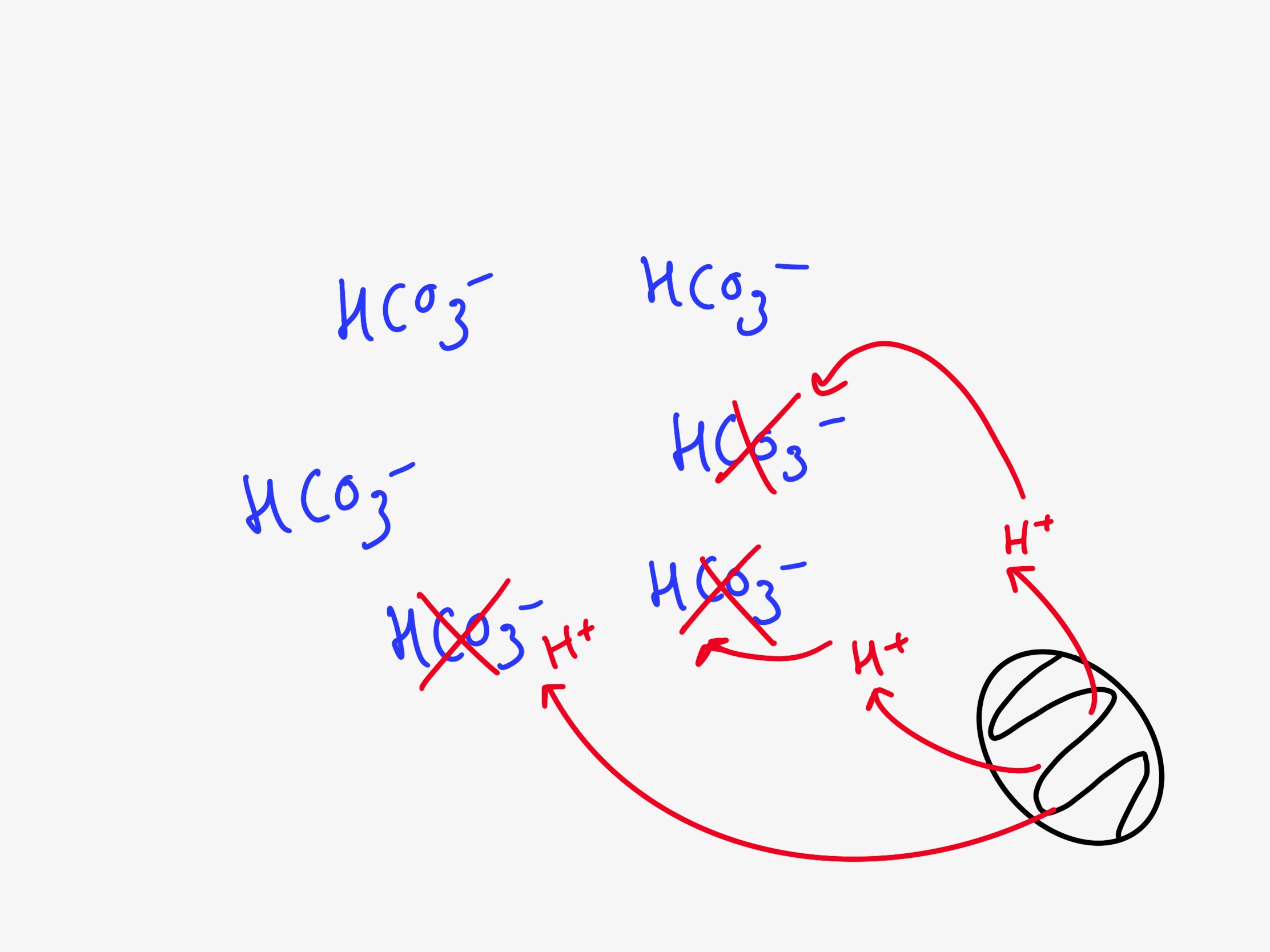 Sauf qu'il y a ce qu'on appelle un pool de bicarbonates dans chaque cellule, et que ce pool est régénéré grâce aux reins. En effet, ce sont les reins qui fabriquent les bicarbonates, ces-derniers rejoignant les cellules via la circulation sanguine.