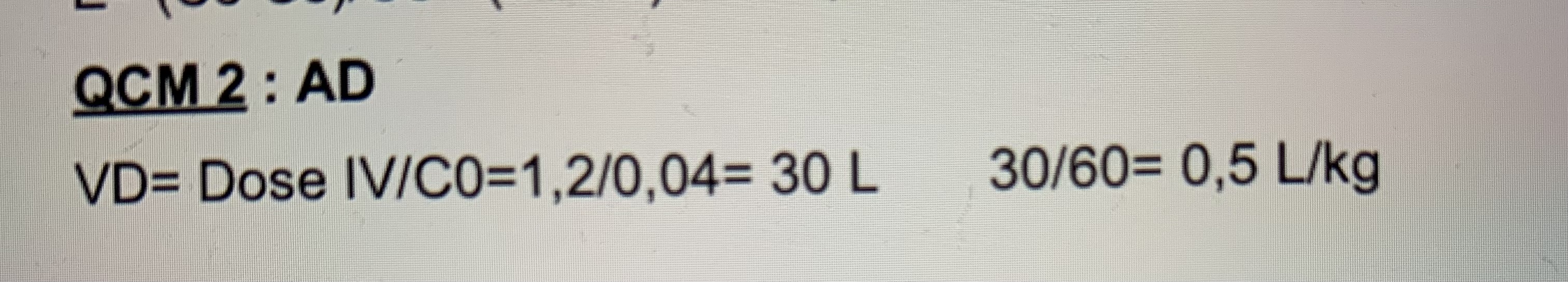 Vd peut être donné en L/kg dans l'énoncé, même si pour être plus juste, il faudrait parler de